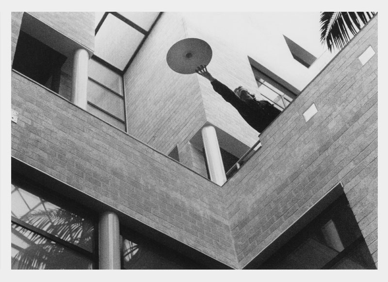 Twee bekkens zoeven omlaag en stoppen vlak boven de hoofden met een hevige slag; dat explosieve geluid komt uit het speakertje, dat onder het bekken is gemonteerd. Even later