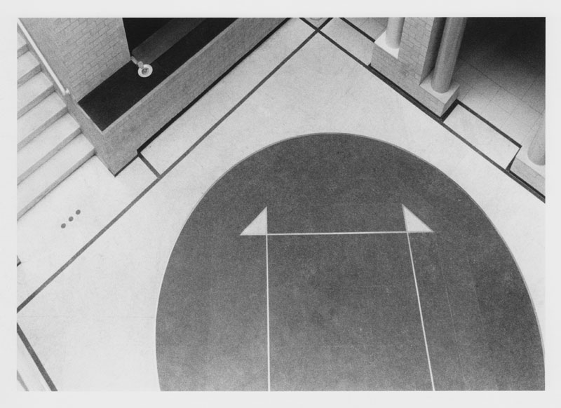 Ontwerp vloer, corresponderend met het glasontwerp boven de vide: Jan Dibbets