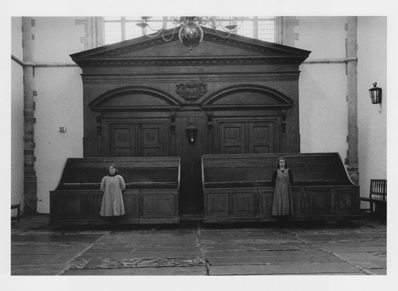 Klaske Bruinsma onder de lantaarn met een kaars die brandt, wanneer de tribunes van twee kanten vanuit de kooromgang naderbij rijden. Zich naar het westen terugdraaiend, bereiken de tribunes hun eindbestemming op deze meest oostelijke plek van de kerk. Daar bevindt zich ook het kleine portiek naar het Klokhuisplein waardoor de bezoekers de kerk verlaten, met de volgende woorden van Martinus Nijhoff nog in de oren: ‘In ’t stille, bleeke water drijven booten: / Zij wachten in de oneindigheid der grijze / Rivier, maar in hun buik zwelt zwaar het groote / Verlangen naar den horizon te reizen’